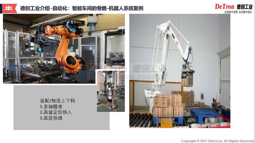 江西德创机电设备有限公司(简称:德创工业)是一家专注于智能制造的高新技术企业,致力于成为国际领先的智能制造系统解决方案服务商。 目前主要有三大业务板块:智能制造系统解决方案和自动化设备系统及信息化系统;产品和服务领域及冶金、有色、钢铁、 汽车、食品、医疗、新能源..[ 查看详情 ]